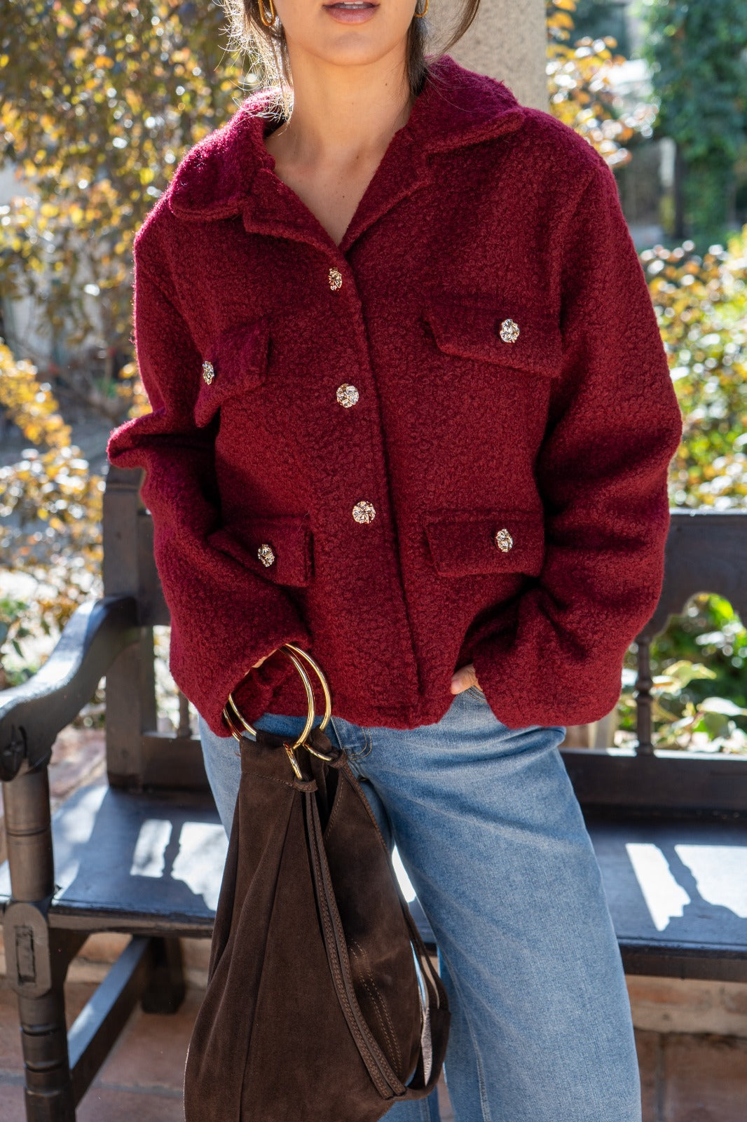 Bolsa em pele castanha com fecho magnético, alça curta com argolas douradas e alça comprida.