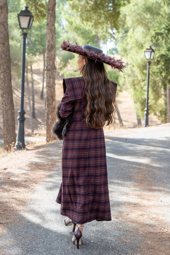 Chapéu de fibra natural tingida à mão com franja de estola. Fecho com faixa para a cabeça. Castanho.