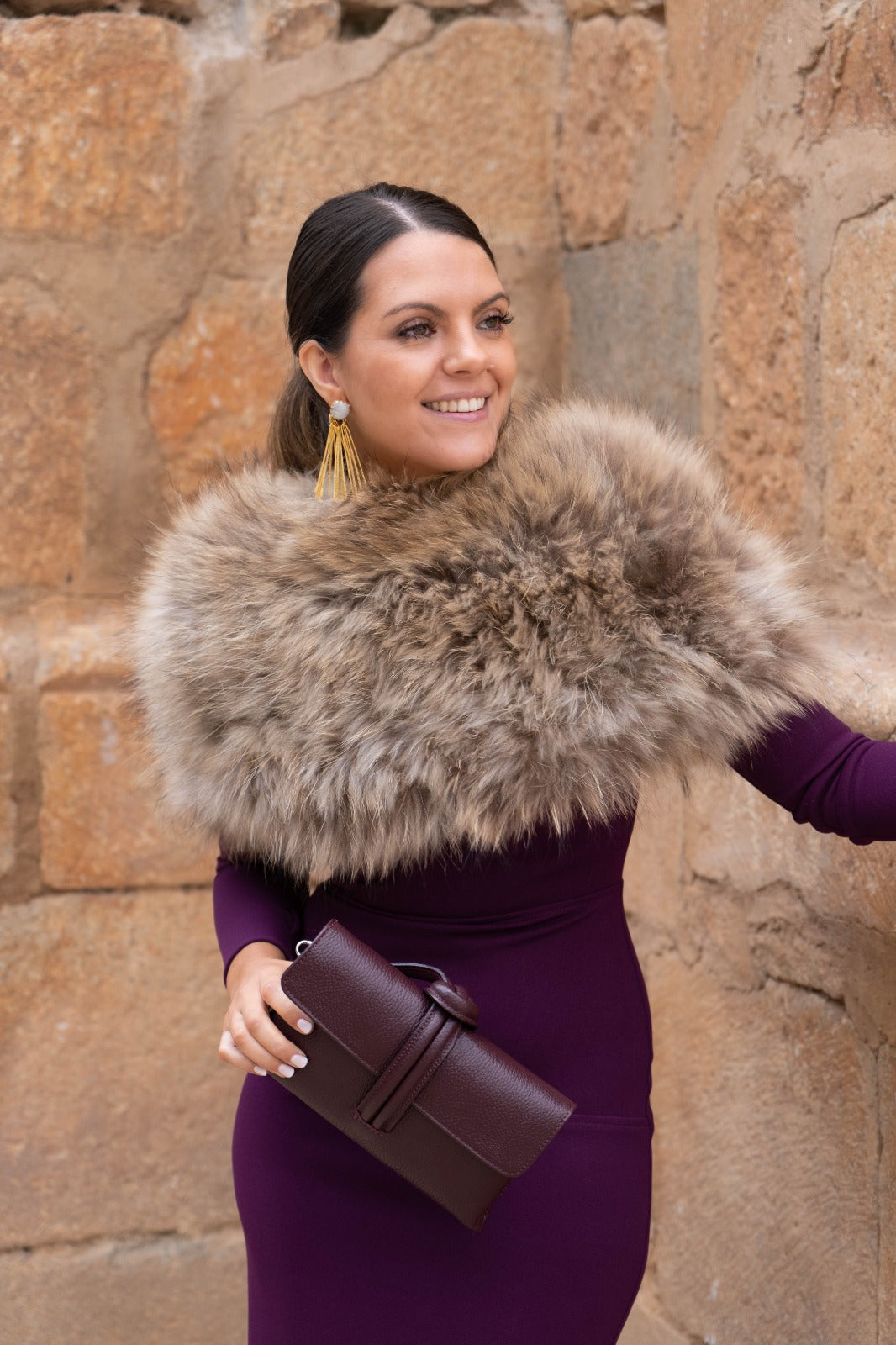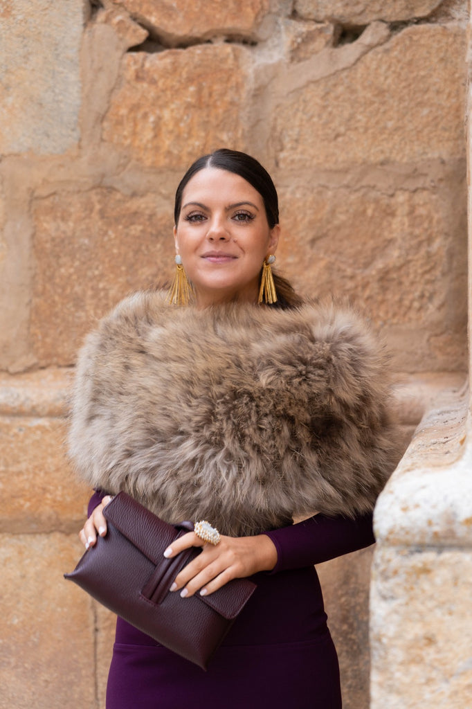 Estola pelo natural, redonda, elástica, para cubrir los brazos. En color marrón.