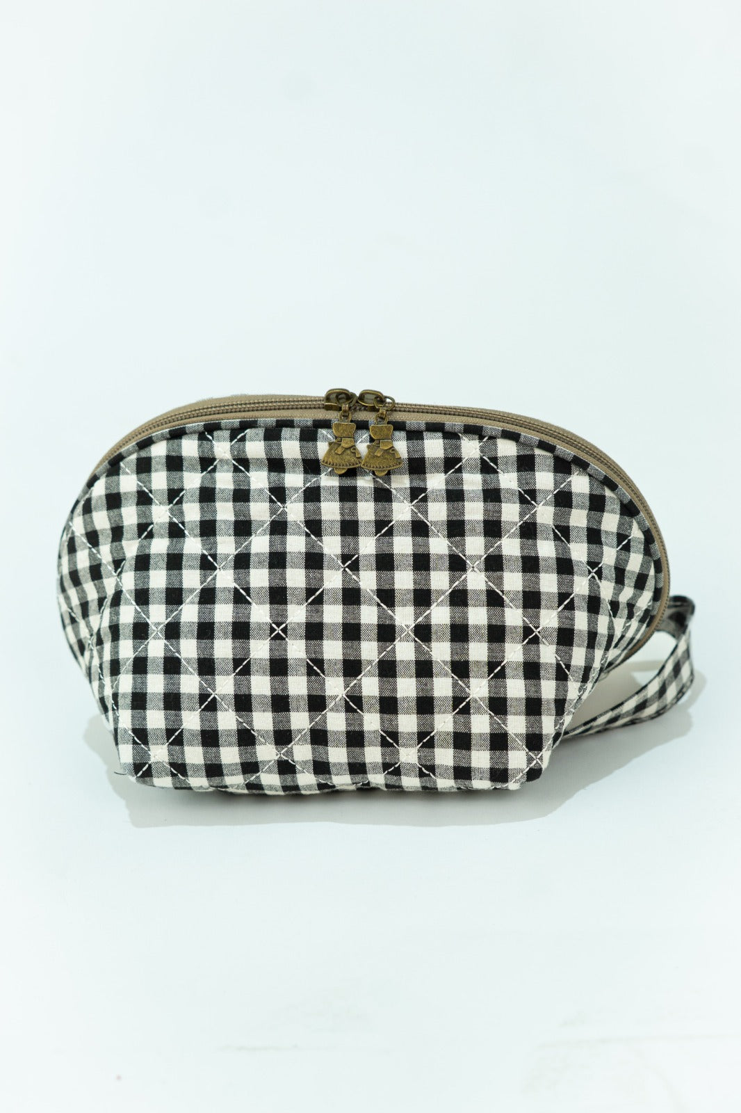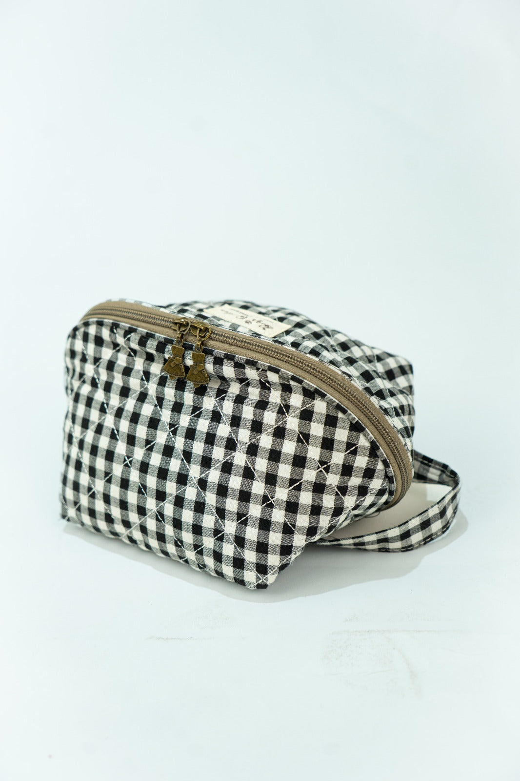 Neceser cierre con cremallera, asa a un lado, en vichy blanco y negro.