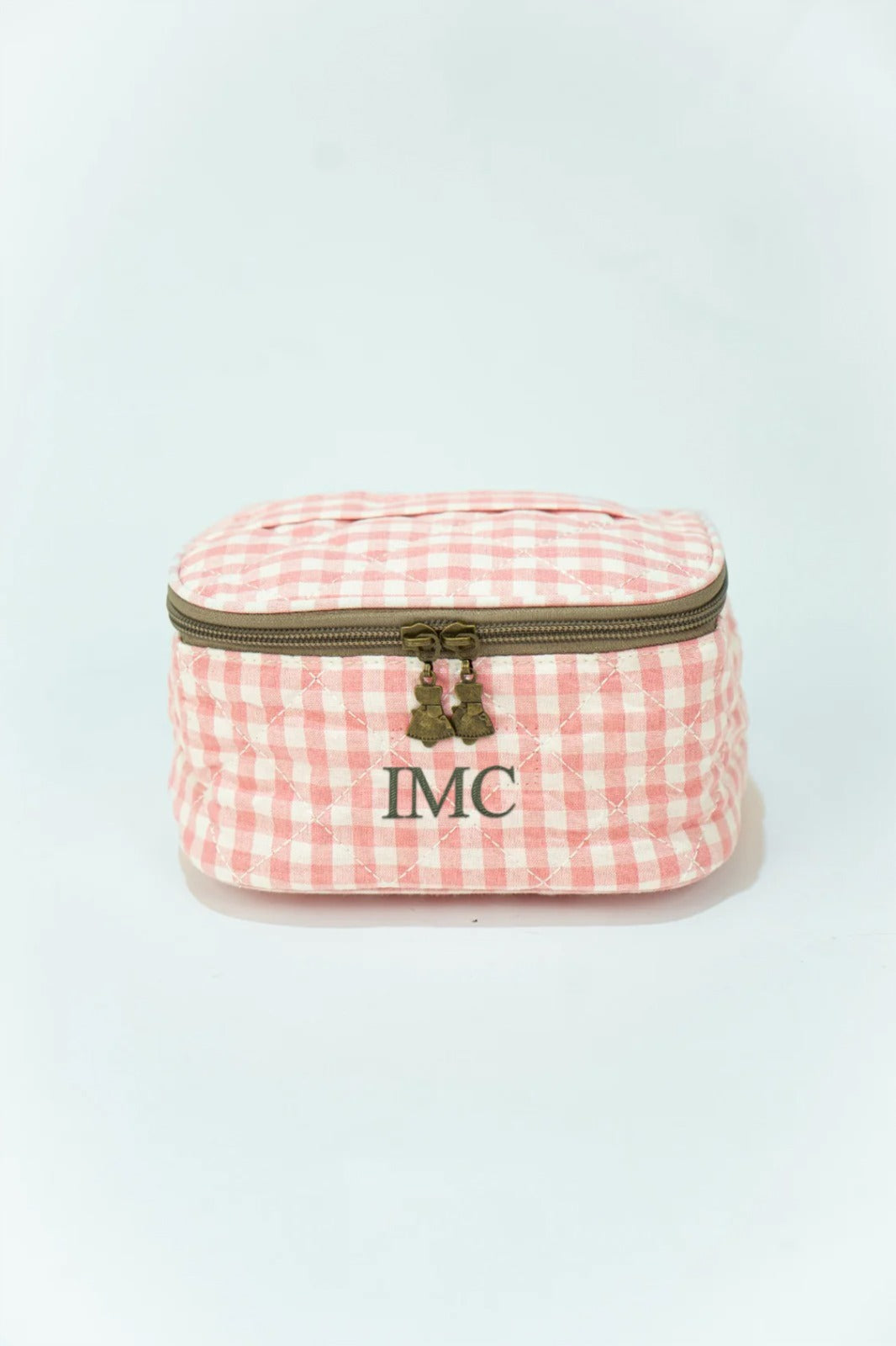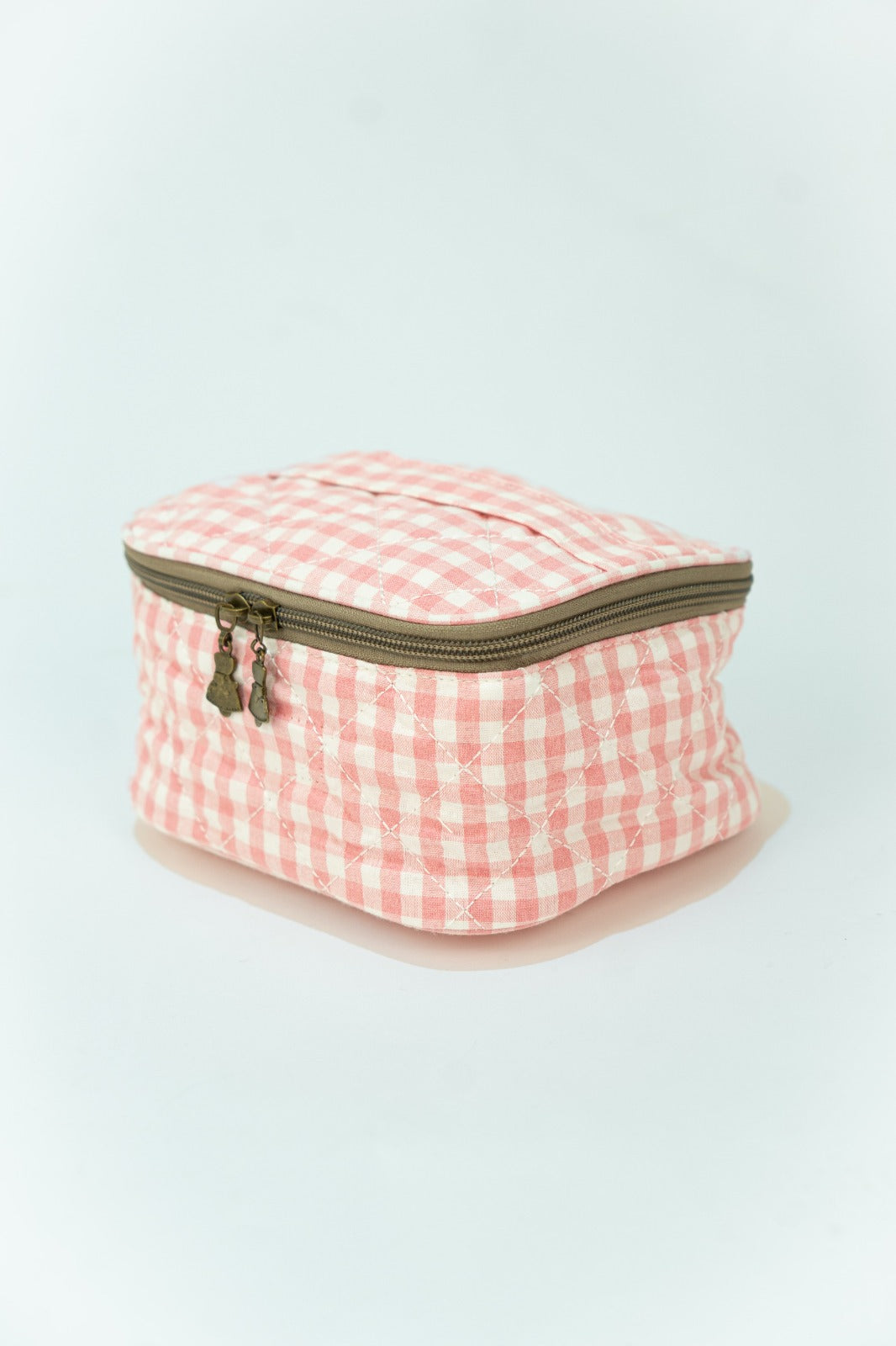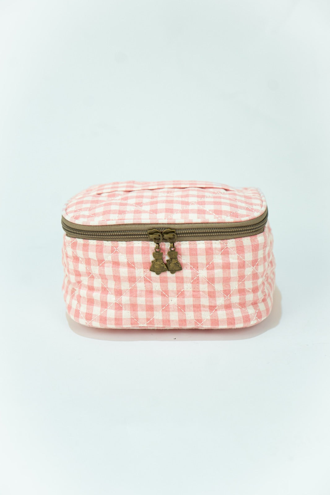 Nécessaire quadrada rosa estilo Vichy