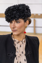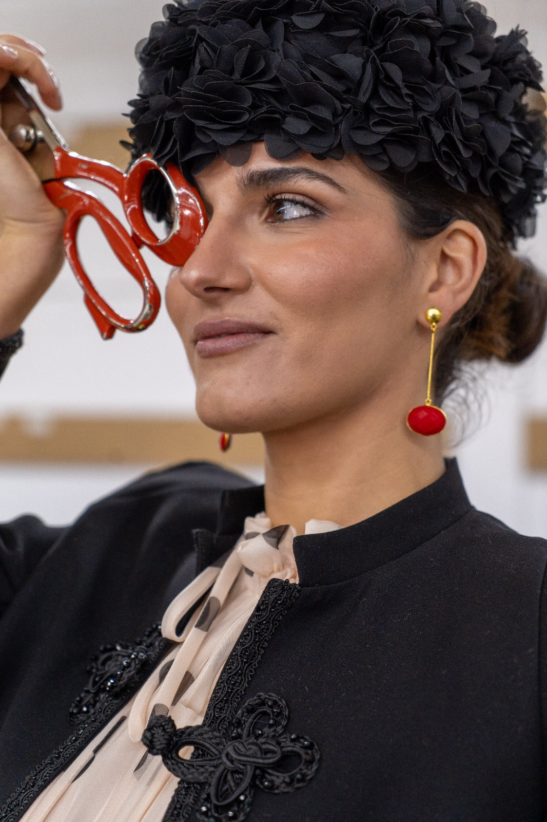 Pendientes con palo vertical que sostiene delicadamente una piedra roja, cierre con tuerca.